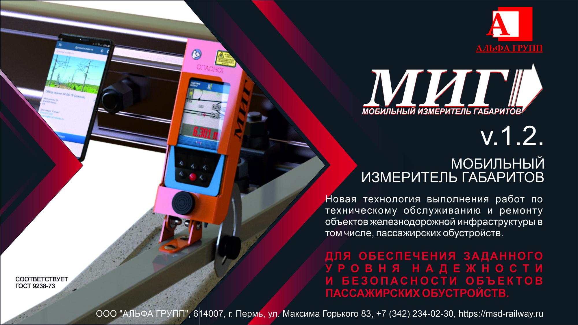 В 2019 году Центральная дирекция пассажирских обустройств сделала открытый запрос на изготовление прибора для измерения параметров габаритов железнодорожной инфраструктуры и пассажирских обустройств. Победителем стала компания «Альфа Консалт» с проектом «МИГ» («Мобильный измеритель габаритов»).