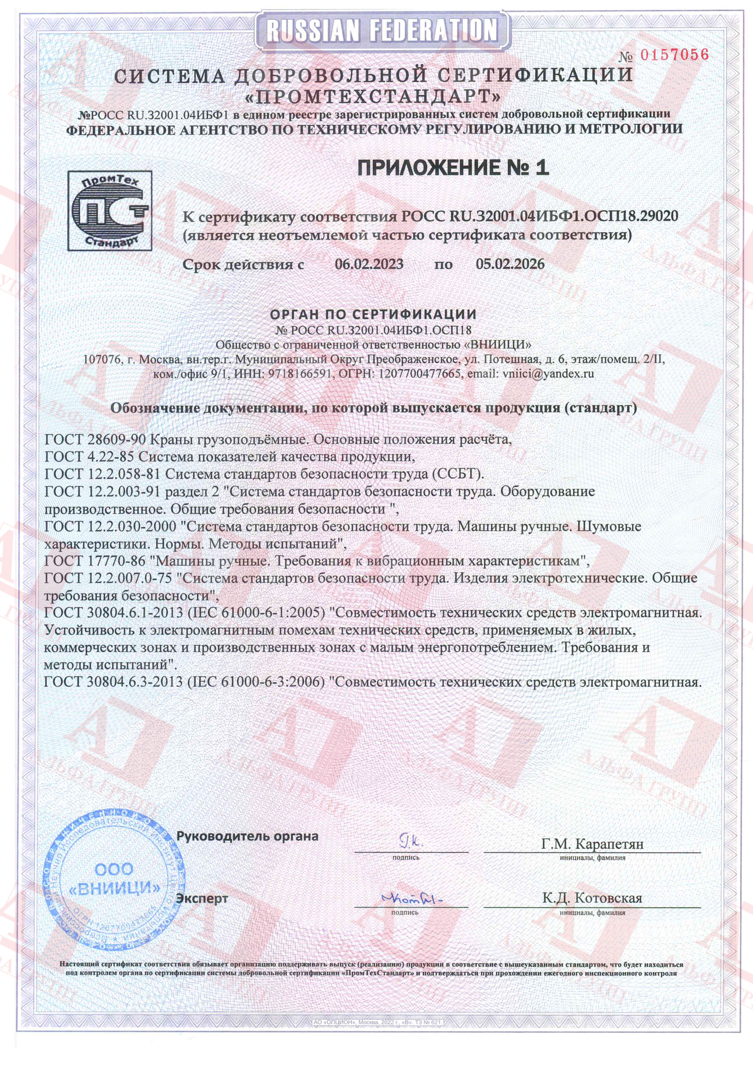 Исполнение крана: Общепромышленное, крановое, У1 (на улице/в помещении)