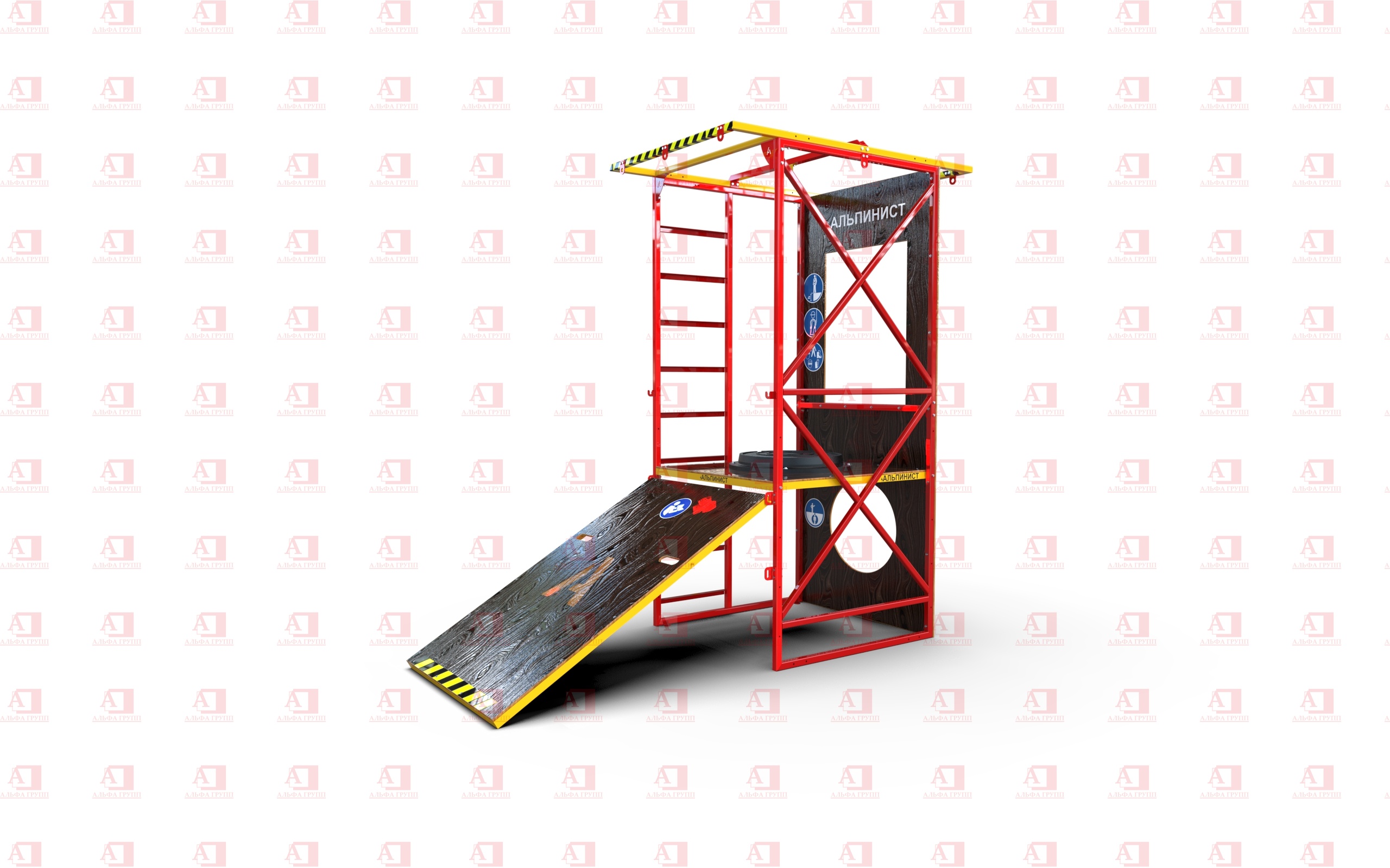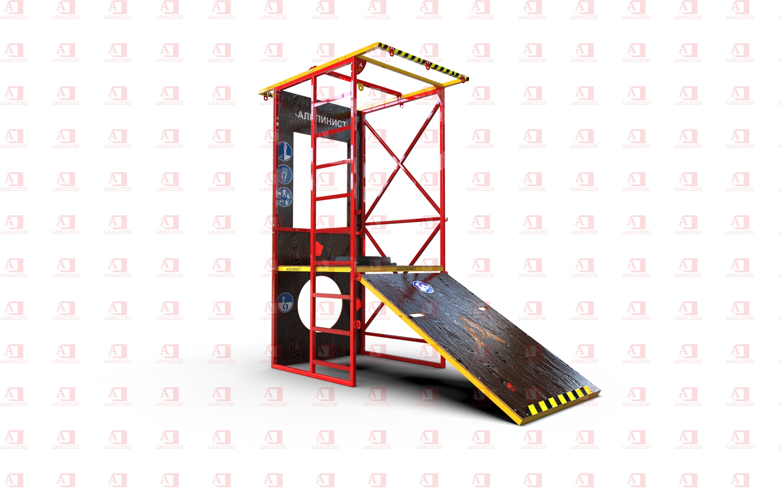 Учебно-тренировочный полигон Альпинист-2-0 (2,7м + без бревна) от АЛЬФА ГРУПП для практических занятий на высоте и в замкнутом пространстве с применением средств индивидуальной защиты и стационарных анкерных систем.